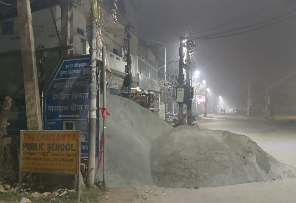 कोहरे के बीच जेसीबी से खुदाई: औरंगाबाद के महावीर नगर पथ पर बढ़ा खतरा