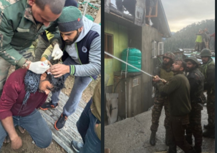 On noticing the fire, Army personnel from 4 RR swiftly moved in with a water bowser and firefighting equipment, extending vital assistance to the civil authorities. Their timely intervention helped contain the blaze and prevented it from spreading further, thereby protecting lives and property.