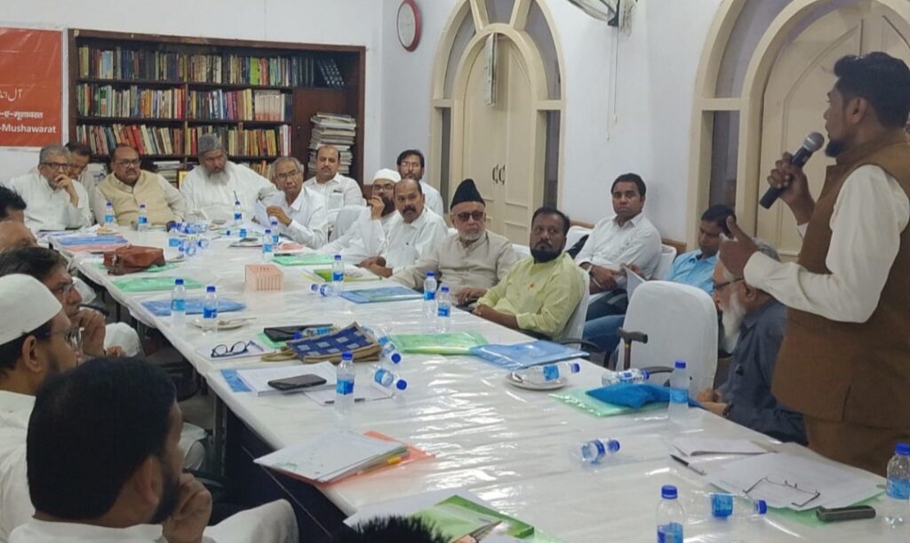 The meeting ended with the closing remarks of the President of the AIMMM and the supplication of the Vice President Maulana Asghar Ali Imam Mehdi Salafi. Within other participants of meeting, the President of Delhi Mushawarat Dr. Idrees Qureshi, General Secretary of Maharashtra Mushawarat Mr Muhammad Ahmed Momin (Aurangabad), Convener of Jharkhand Mushawarat Mr. Khurshid Hassan Rumi (Ranchi), Haji Shakeel Ahmed (Jharkhand), Mr. Abrar Ahmed, IRS (Delhi), Prof. Baseer Ahmed Khan (Delhi), Er Sikandar Hayat (Delhi), Abdul Khaliq Ansari (Delhi), Mr Waqar Ahmed (Lucknow), Abdul Qayyum Khan (Srinagar), Maulana Muhammad Salim (Moradabad), Muhammad Aftab Alam (Delhi), Muhammad Murtaza (Delhi), Prof. Aqil Ali Syed (Gujarat) Prof. Abuzar Kamaluddin, President, Mushawarat, Bihar Unit and Prof. Waseem Ahmad Khan (Delhi)’s names are worth mentioning.