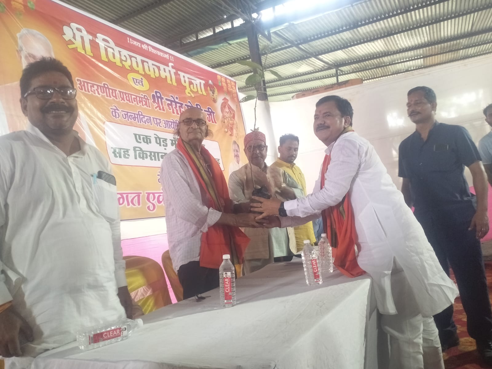 औरंगाबाद: (बिहार) भाजपा के प्रदेश कार्य समिति सदस्य / शहर के जाने माने चर्चित व्यवसायी व सदर विधानसभा क्षेत्र औरंगाबाद के संभावित प्रत्याशी, गोपाल शरण सिंह ने प्रत्येक वर्ष की भांति इस वर्ष भी अपने इंडस्ट्रियल ग्रोथ सेंटर, औरंगाबाद स्थित माँ मुंडेश्वरी एग्रो मिल (राइस मिल) के कैंपस में ही विश्वकर्मा पूजा के दिन माँ मुंडेश्वरी ग्रुप ऑफ़ कंपनीज के बैनर तले भगवान श्री विश्वकर्मा पूजा के सुअवसर पर बुधवार दिनांक – 17 सितम्बर 2025 को किसान सम्मान एवं देश के यशस्वी प्रधानमंत्री, माननीय नरेंद्र मोदी के जन्म दिन के शुभ अवसर पर भी एक वृक्ष माँ के नाम कार्यक्रम का आयोजन किया. जिसमें प्रत्येक वर्ष की भांति इस वर्ष भी हज़ारों की संख्या में एक – एक पौधा देकर लोगों को सम्मानित किया, और देश के यशस्वी प्रधानमंत्री, माननीय नरेंद्र मोदी को दीर्घायु होने की कामना भी की.