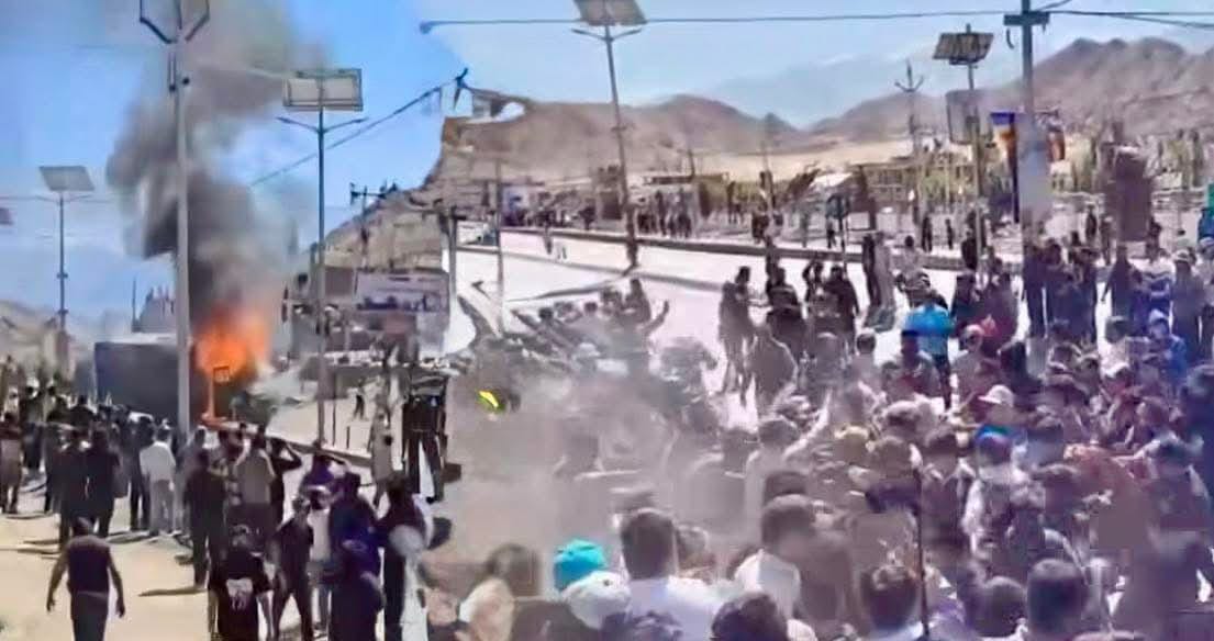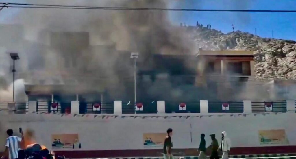 The unrest was triggered after two elderly men participating in a hunger strike — part of a 15-person fast launched on September 10 under the leadership of renowned climate activist Sonam Wangchuk — were shifted to hospital in critical condition. The news spread rapidly, fueling anger among demonstrators who clashed with police, resorted to stone pelting, and set ablaze the BJP office in Leh and a vehicle.