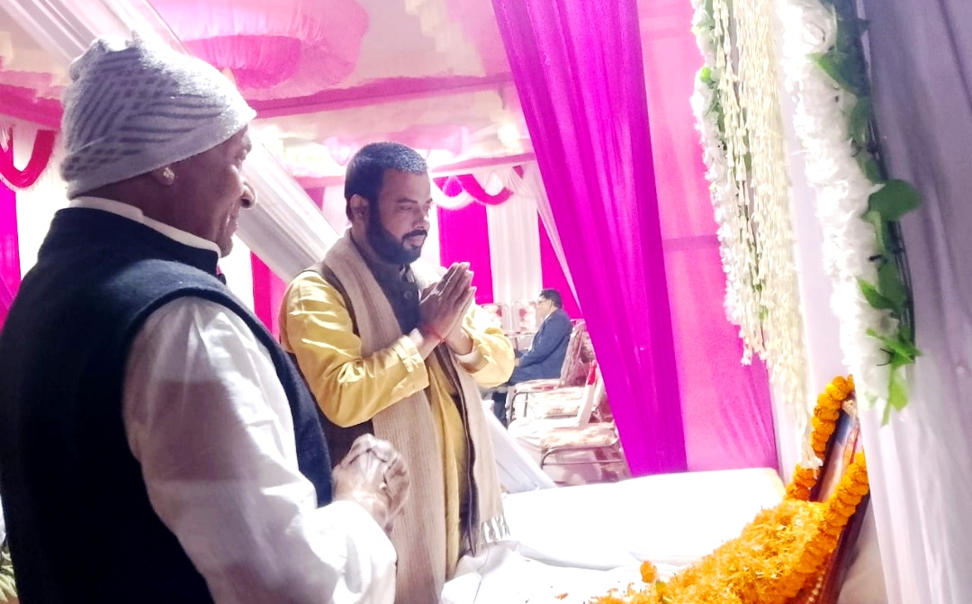मनोज कुमार सिंह जैसे ही कार्यक्रम स्थल पर पहुंचे, उन्होंने सबसे पहले दिवंगत माता जी के चित्र पर पुष्पांजलि अर्पित की। इसके बाद उन्होंने श्रद्धापूर्वक नमन करते हुए उनकी आत्मा की शांति के लिए ईश्वर से प्रार्थना की। उन्होंने परिवार के सदस्यों से मिलकर अपनी गहरी संवेदना व्यक्त की और इस दुख की घड़ी में धैर्य बनाए रखने का संदेश दिया।