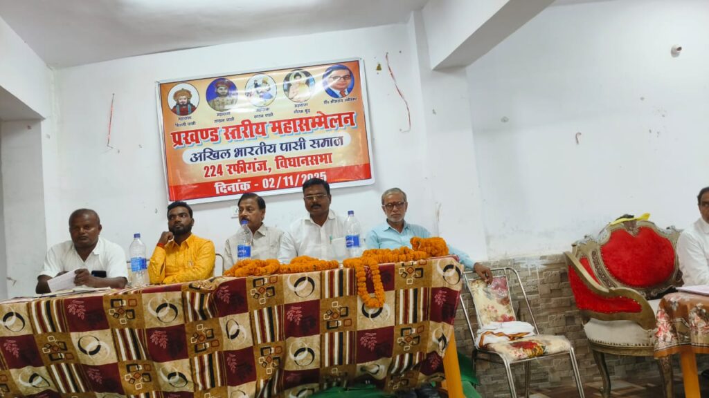 औरंगाबाद (बिहार): रविवार, 02 नवंबर 2025 को रफीगंज में अखिल भारतीय पासी समाज के बैनर तले प्रखंड स्तरीय महासम्मेलन का आयोजन किया गया। इस आयोजन की अध्यक्षता सेवानिवृत्त रामपति चौधरी ने की, जबकि मंच संचालन चरकावॉ पंचायत के पूर्व मुखिया भोला चौधरी ने संभाला।