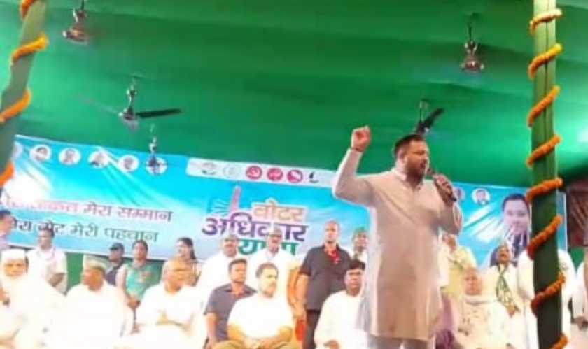 इसके बाद बिहार विधानसभा के नेता प्रतिपक्ष ने कहा कि दूर – दराज से जो लोग हैं. वो हाथ उठाकर के बताइए. लड़ना है ना. सब लोग हाथ खड़ा कीजिए, लड़ना है ना, तो आप सब लोगों को दिल से बहुत-बहुत धन्यवाद देते हुए अपनी बात को जो है. यहीं विराम देंगे, अपनी आज से खटारा सरकार को जाना तय है. बहुत-बहुत धन्यवाद. सरकार बनेगी तो माई – बहिन मान योजना का लाकर के सभी गरीब महिलाओं को खाते में 2,500 रुपया प्रतिमाह हम लोग दिलाने का काम करेंगे, और तेजस्वी ने जो कहा, वो किया है.