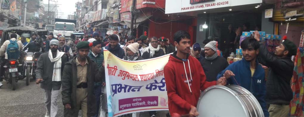 प्रभात फेरी में बड़ी संख्या में लोगों ने भाग लिया। इसमें टिकारी राज इंटर कॉलेज के सैकड़ों एनसीसी कैडेट्स शामिल थे। साथ ही प्रखंड विकास पदाधिकारी योगेन्द्र पासवान, टिकारी अनुमंडल संघर्ष समिति के संयोजक अबरार आलम, सामाजिक कार्यकर्ता हिमांशु शेखर, टिकारी नगर परिषद के अध्यक्ष अज़हर इमाम तथा अन्य गणमान्य लोग भी मौजूद रहे। अनुमंडल पदाधिकारी प्रवीण कुंदन के प्रतिनिधि के रूप में टिकारी प्रखंड पदाधिकारी कार्यक्रम में शामिल हुए।